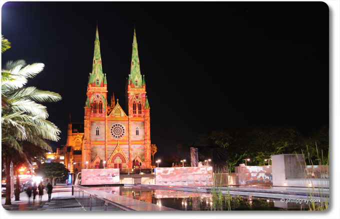 August 24, 2010August 12, 2010 vivid lights St Mary’s Cathedral was lit up during Sydney’s Vivid light festival. Share: Click to share on Facebook (Opens in new window) Facebook Click to email a link to a friend (Opens in new window) Email Click to share on X (Opens in new window) X More Click to share on Reddit (Opens in new window) Reddit Like Loading... Related