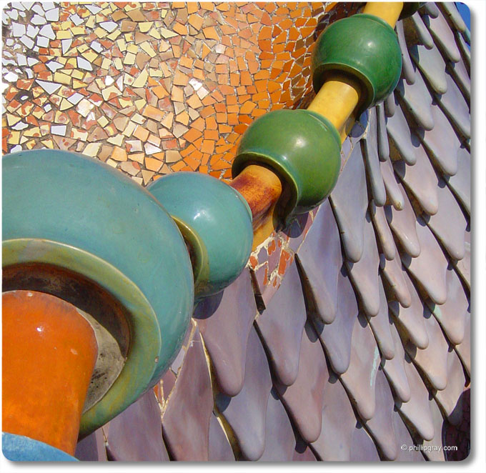 September 3, 2010August 28, 2010 gaudi tiles This is the roof of Batlló house. Barcelona, Spain. Designed by the famous architect Antoni Gaudi. Share: Click to share on Facebook (Opens in new window) Facebook Click to email a link to a friend (Opens in new window) Email Click to share on X (Opens in new window) X More Click to share on Reddit (Opens in new window) Reddit Like Loading... Related