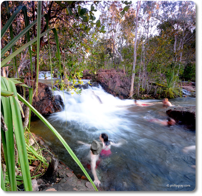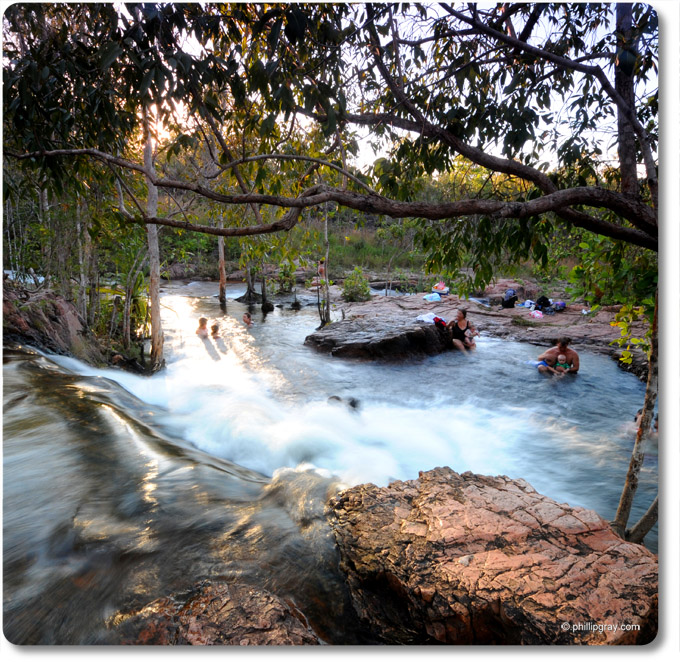 Buley Rock Pools in Litchfield National Park. Not far from Darwin. Infact a lot of day trippers come here from Darwin. My advice is to camp in the nearby campground and enjoy it after the crowds go home.