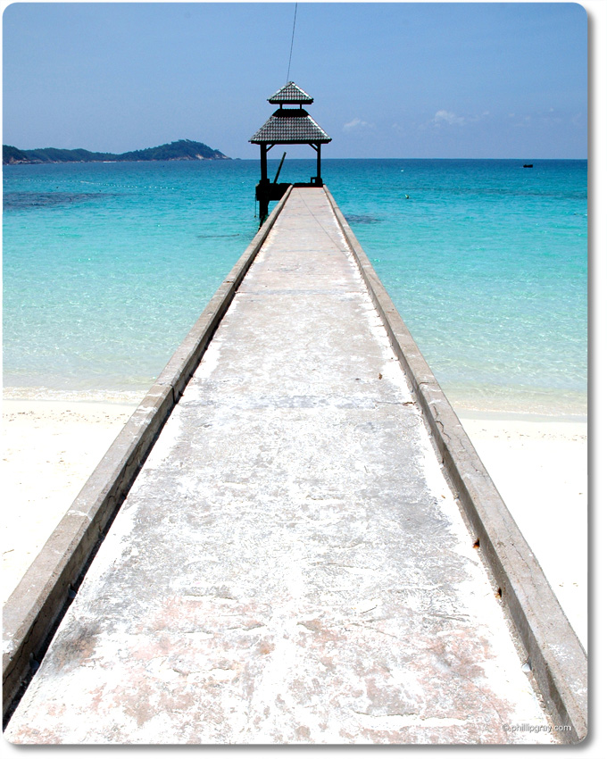 The tropical island of Pulau Perhentian off the east coast of Malaysia. I fairly quiet place where you step outside of you nice little beach hut and snorkel with giant sea turtles just metres away!