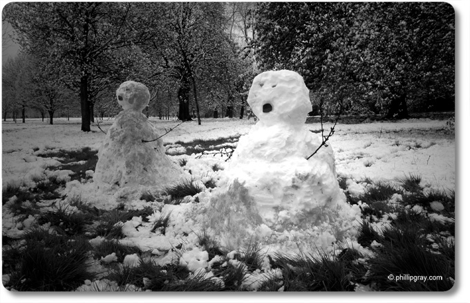 December 22, 2011December 12, 2011 Regents Park Snowmen Regents Park, London after an overnight snowfall. Share: Click to share on Facebook (Opens in new window) Facebook Click to email a link to a friend (Opens in new window) Email Click to share on X (Opens in new window) X More Click to share on Reddit (Opens in new window) Reddit Like Loading... Related