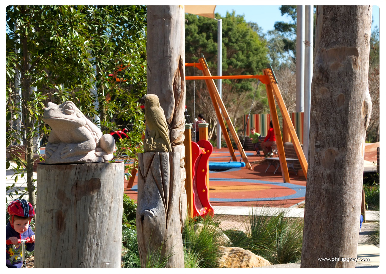 This is one of Sydney’s newest playgrounds. Its been specifically designed as an all abilities playground which basically means there is a range of play equipment and experiences to cater for children of all abilities (this is basically the politically correct way to refer to a playground that also caters to disabled children). Its quite an impressive playground with plenty of cool pieces of equipment, different surfaces, gardens and level changes. And yes, there are toilets in the park.