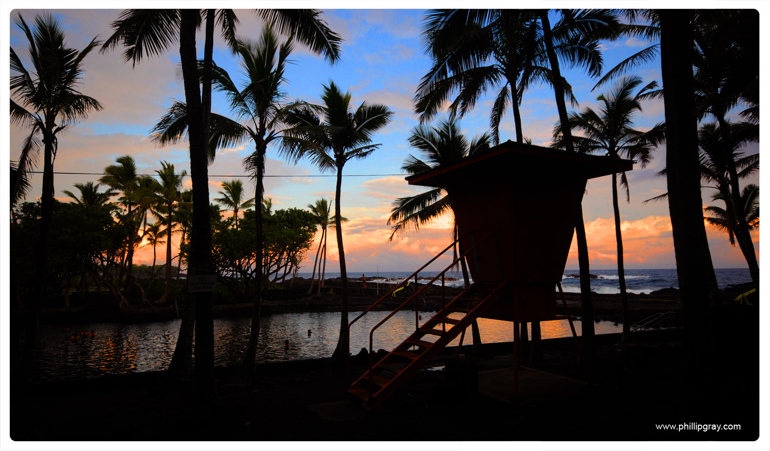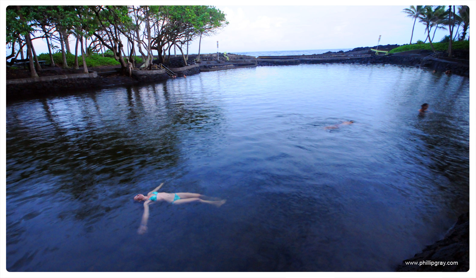 Located on the south east corner of the Big Island, not far from Pahoa, is Ahalanui Park. A large thermal swimming pool on the edge of the ocean. A very popular spot for locals and visitors. If its high tide and the ocean is rough, waves will spill into the pool. We went a couple of times as it was about 10 mins from where we were staying.