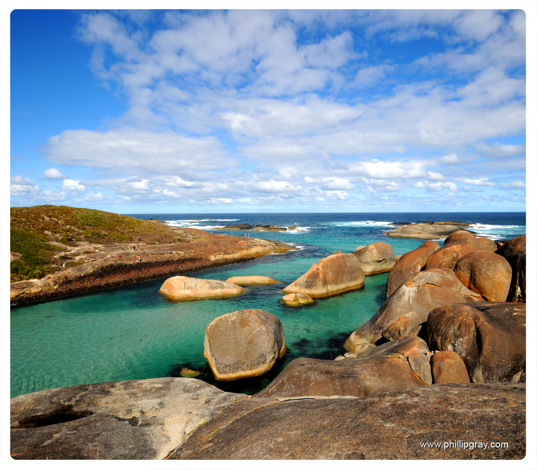 Just around the corner, about 200m from Greens Pool (previous post) is a place called Elephant Rocks. As its name suggests the large boulders lying in the bay look very much like elephants! Another great swimming spot on the Western Australian south coast. The nearby town of Denmark is a nice little place. There’s a great bakery there.